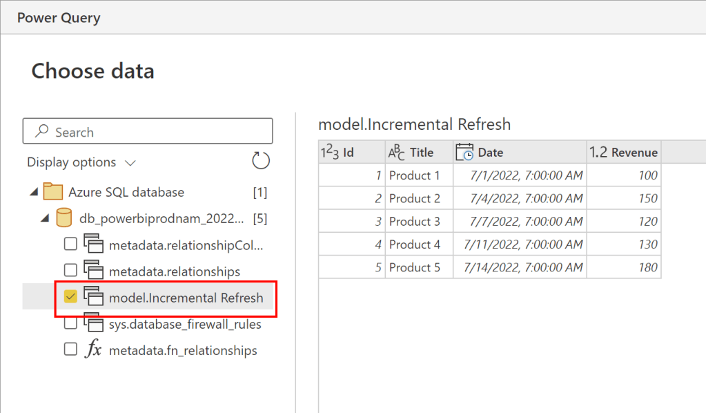 In Power Query Online I select only the needed columns (ID, Title, Date, and Revenue) and make sure that all data types are correct. As Incremental Refresh requires a DateTime column, please ensure your date column is set up correctly.