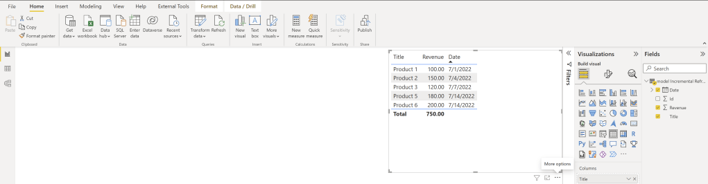 Now, let’s trigger a refresh of our Dataflow. Once it’s finished, I hit the refresh button in my Power BI Desktop, which is connected to the Dataflow, to see the end result.