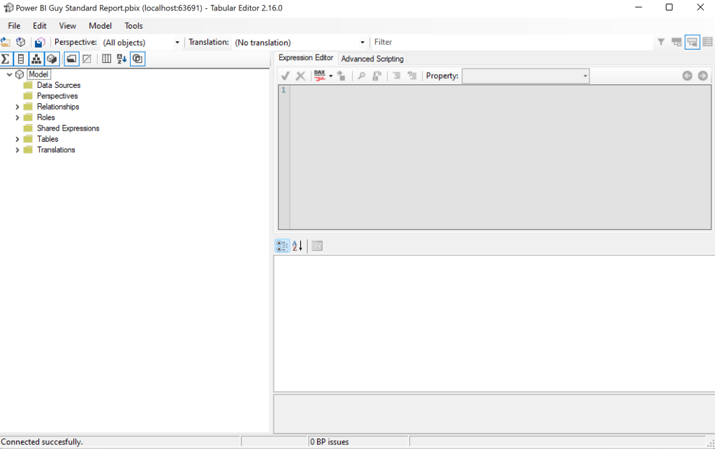 To be able to add multiple languages into your model you’ll need to work with third-party tools. This could be Visual Studio, Tabular Editor, or anything else that can handle and configure a tabular model. In my case I like to work with Tabular Editor because as soon as you install it you’ll have it integrated in Power BI Desktop to open it directly from the ribbon connected to your model.